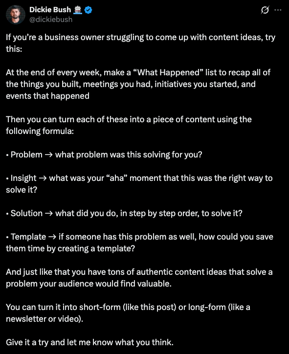 Dickie Bush just solved your small business content problem. Mic. Drop.